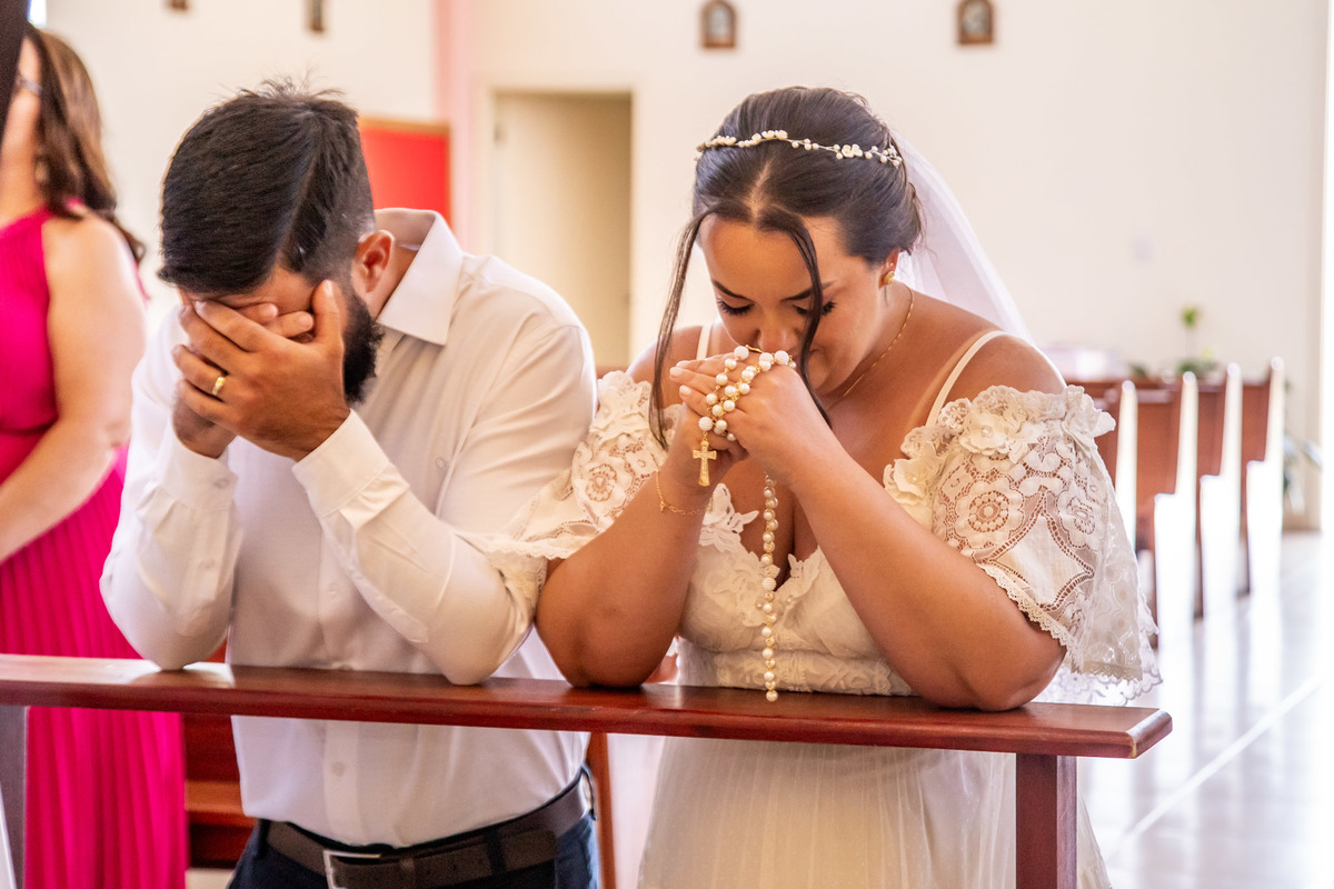 Casal abençoado por seus familiares, em uma cerimônia com muitas emoções...