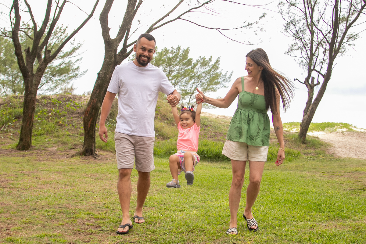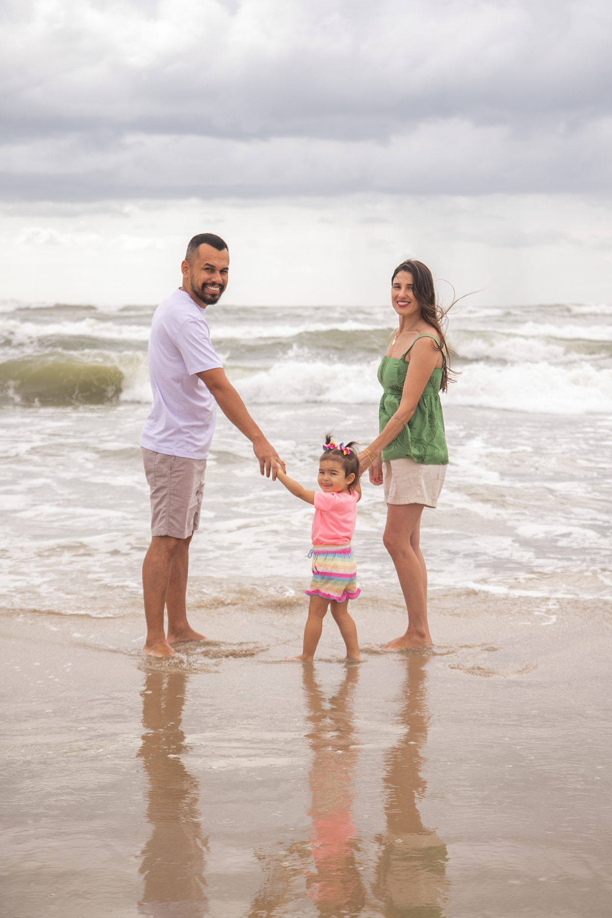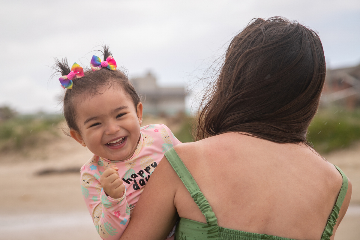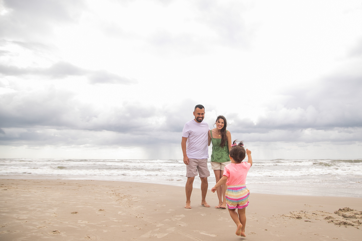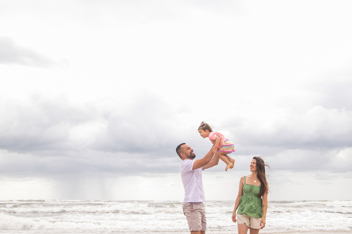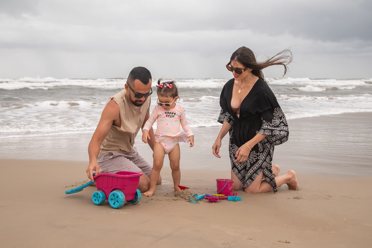 A praia, o abraço dos pais e a alegria de uma filha: memórias simples que merecem ser eternizadas.