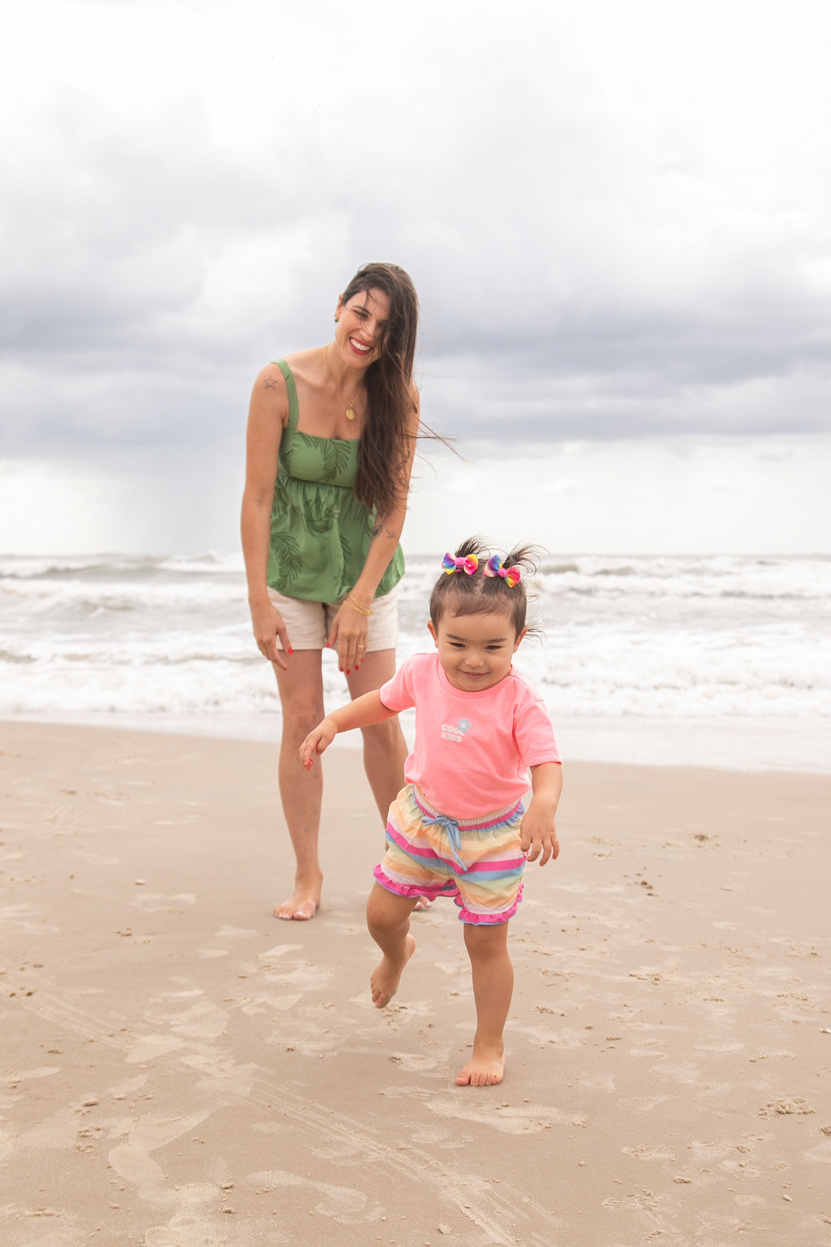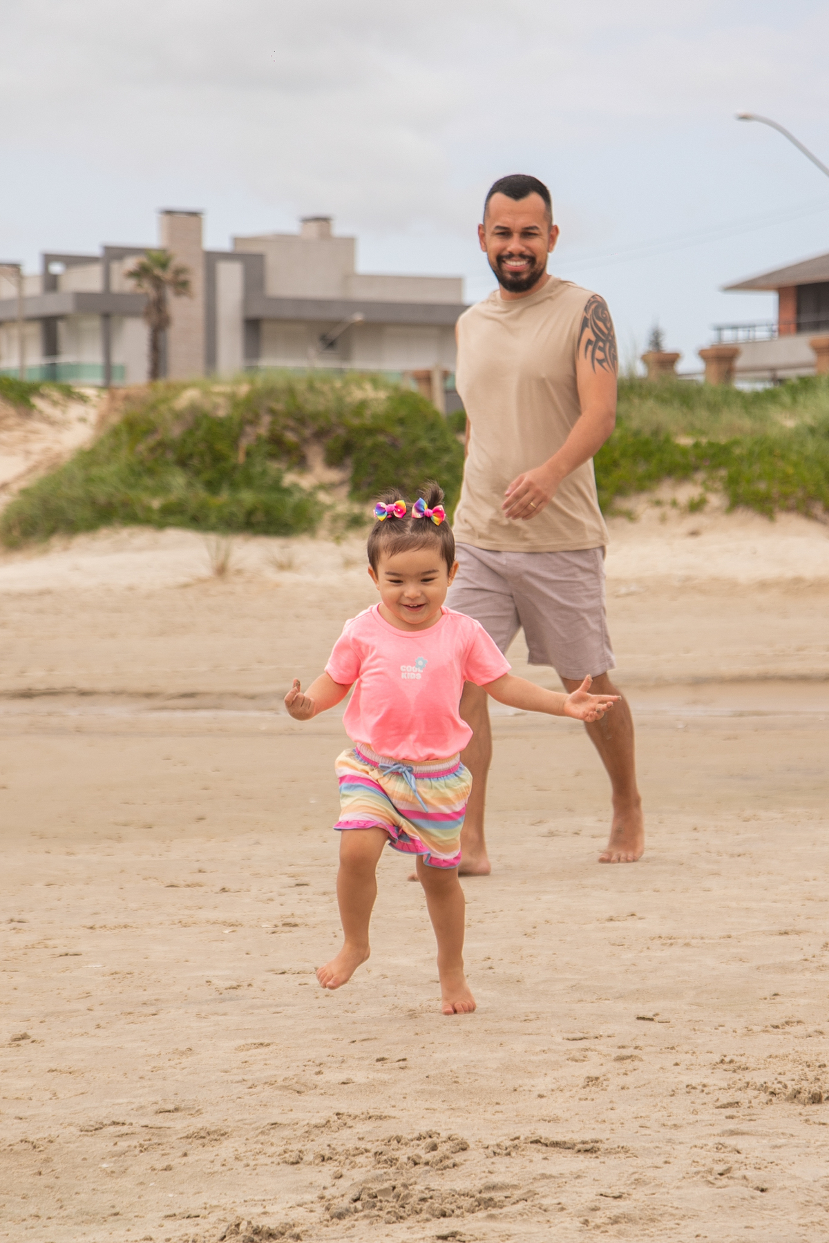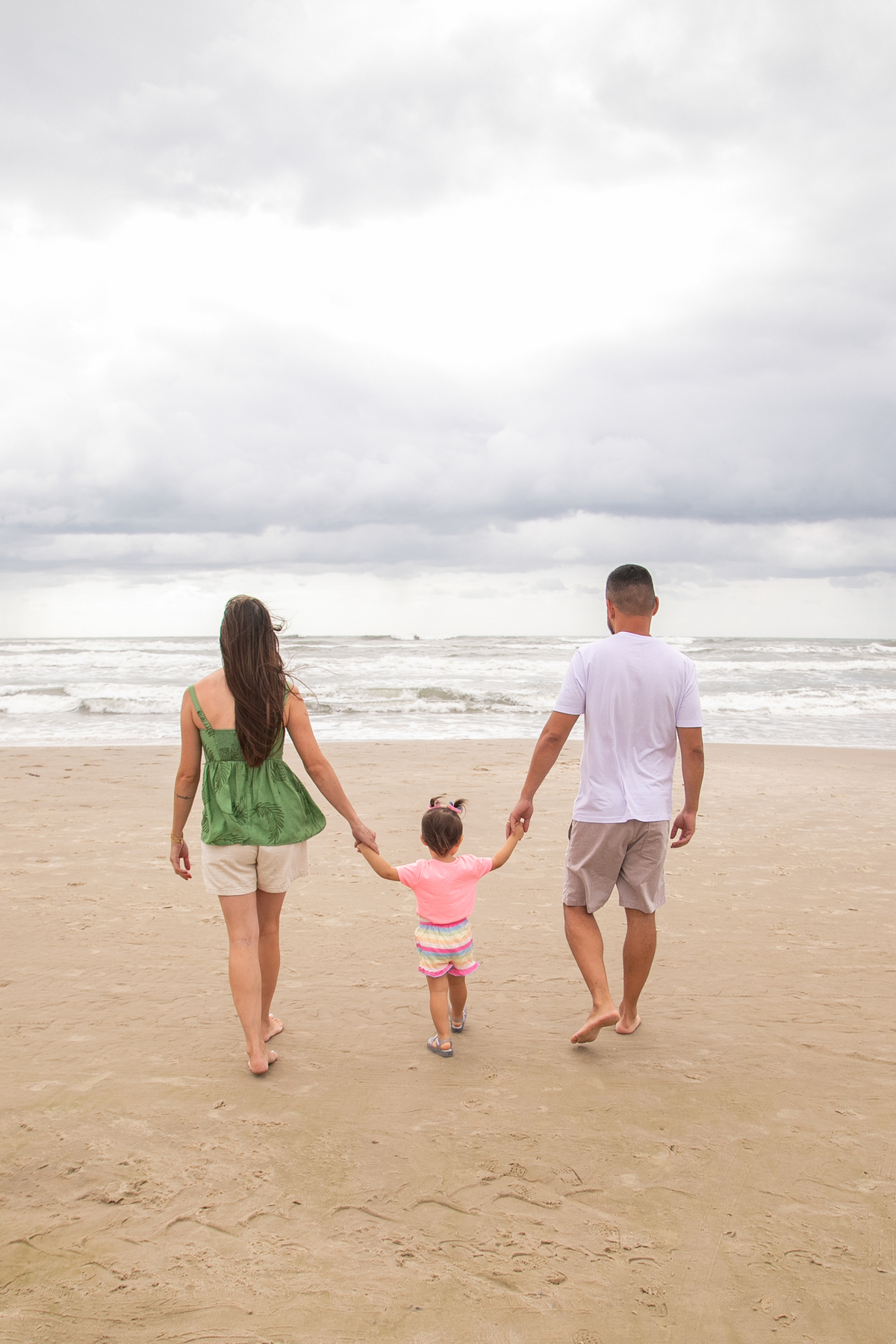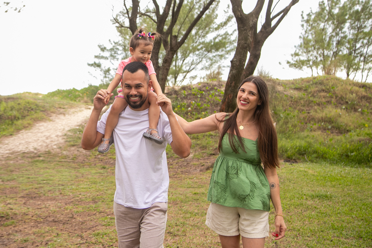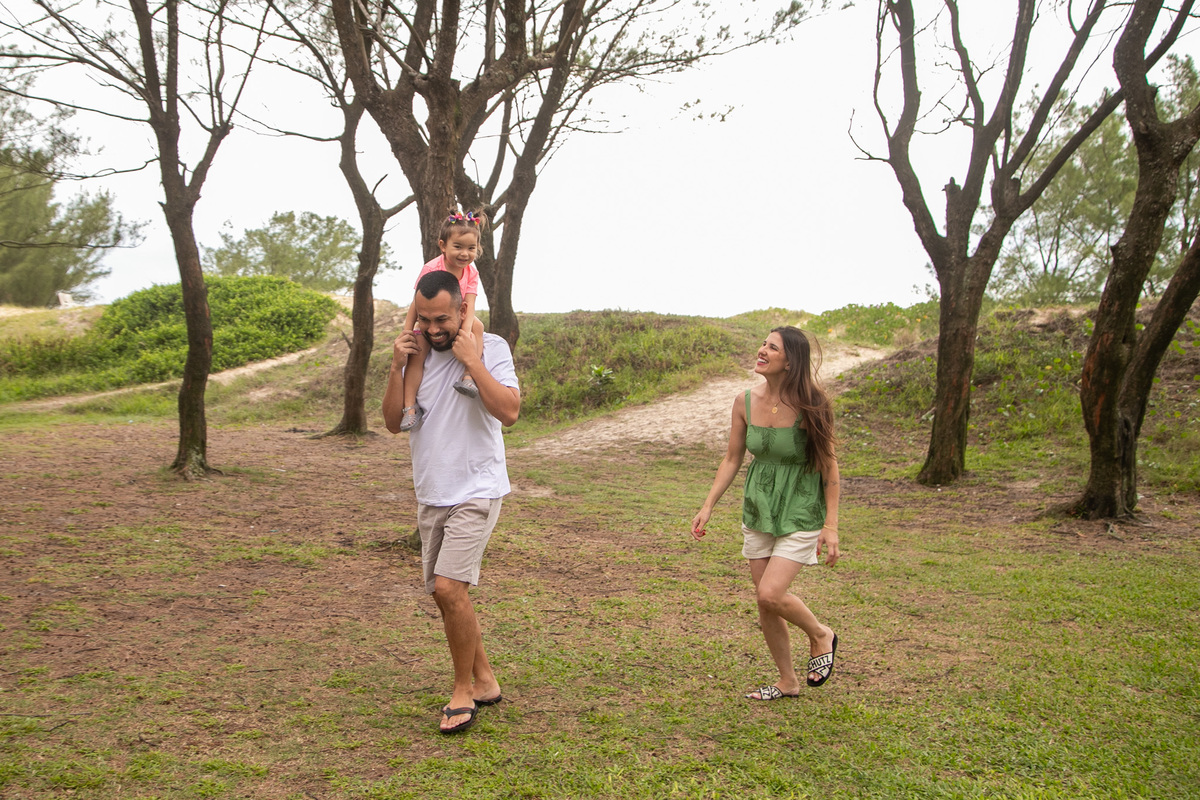 A praia, o abraço dos pais e a alegria de uma filha: memórias simples que merecem ser eternizadas.