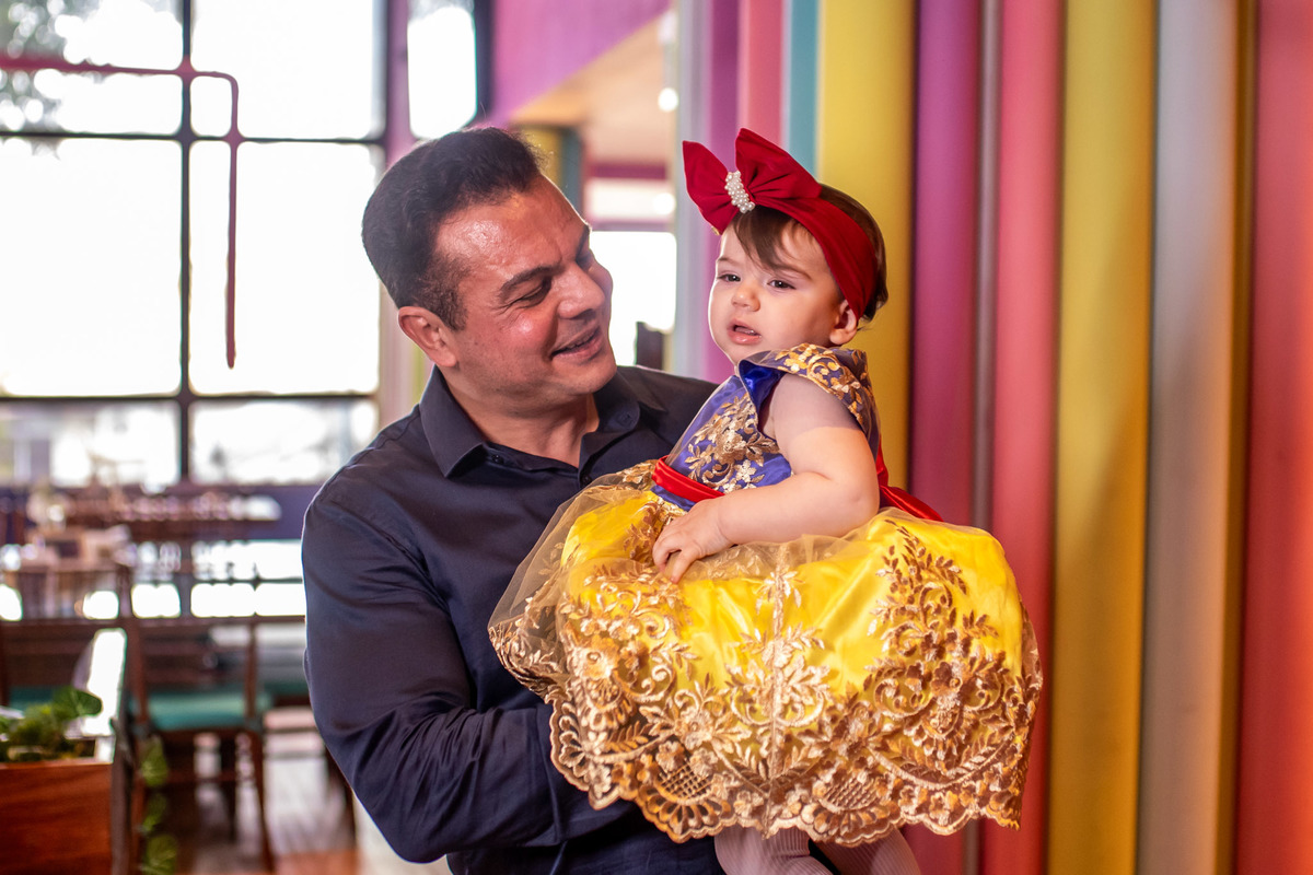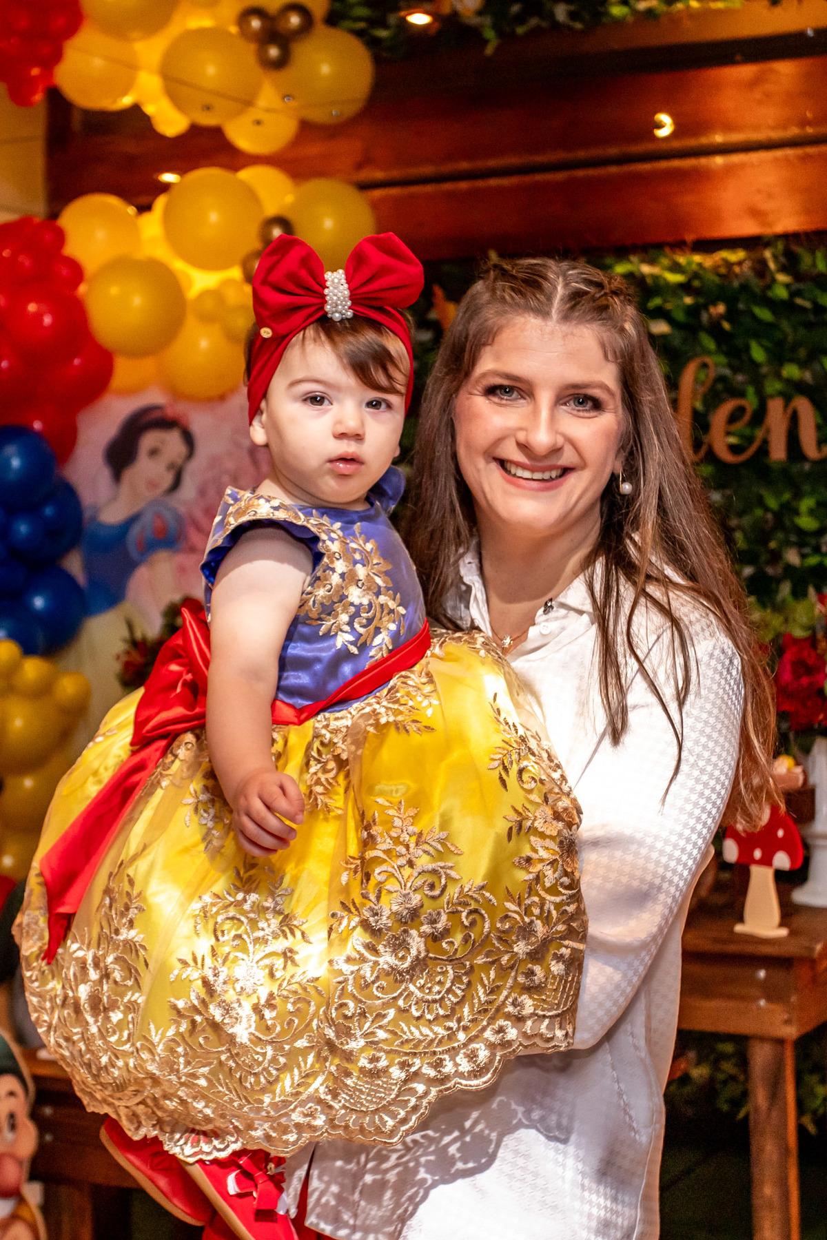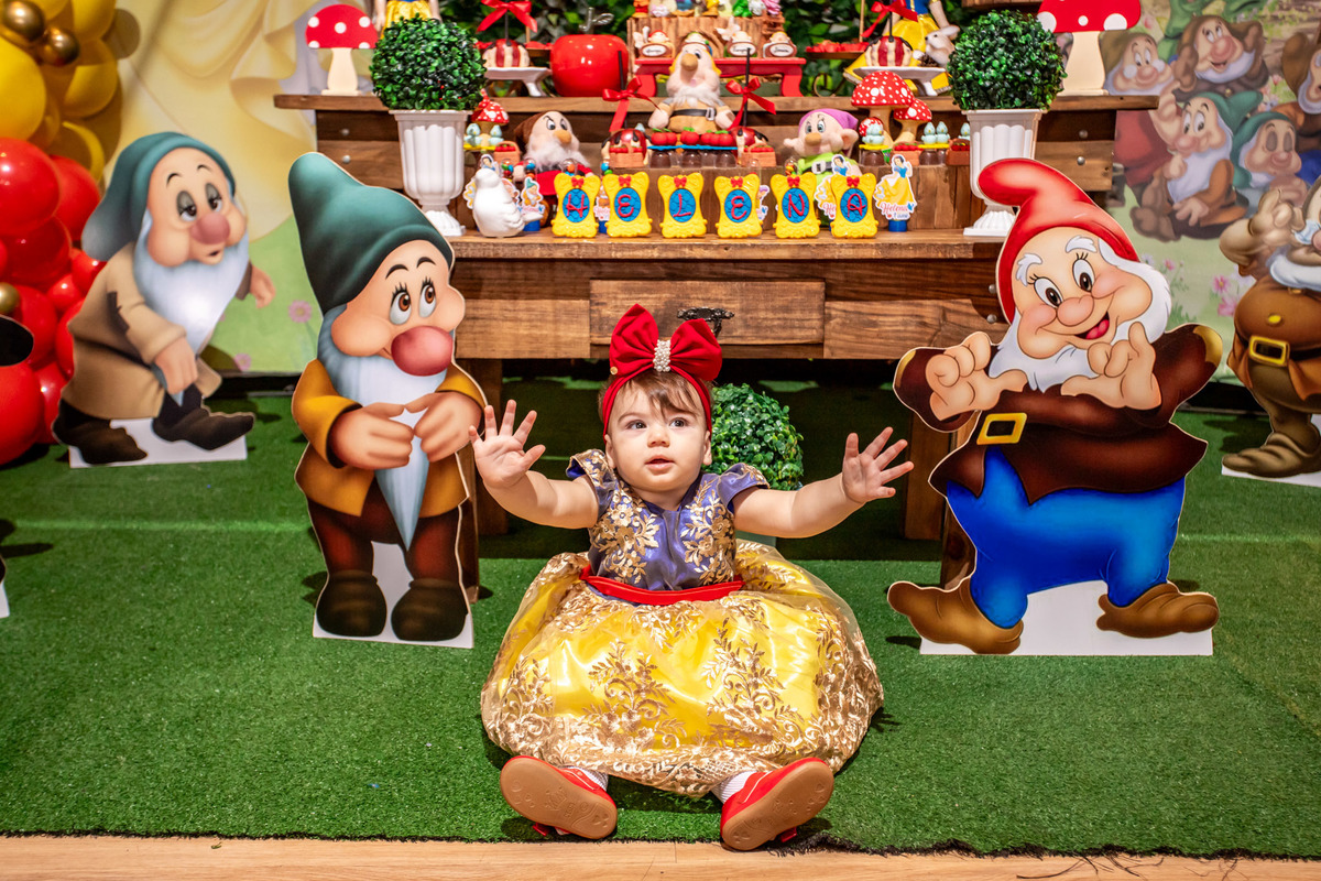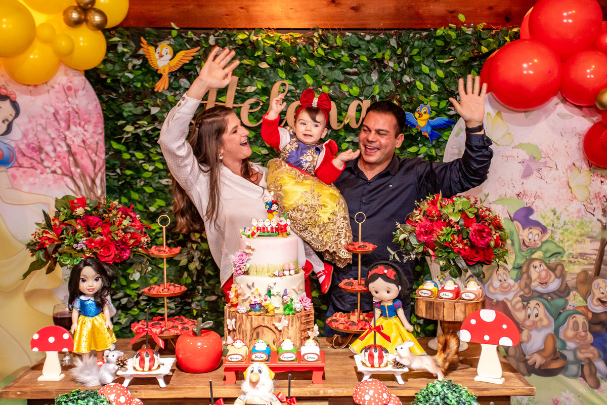 Teve festinha da branca de neve para 1° da Helena...