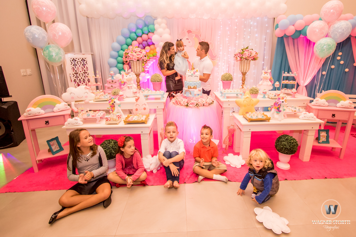 Menina linda, divertiu-se muito com seus amigos e familiares no mundo dos unicórnios...